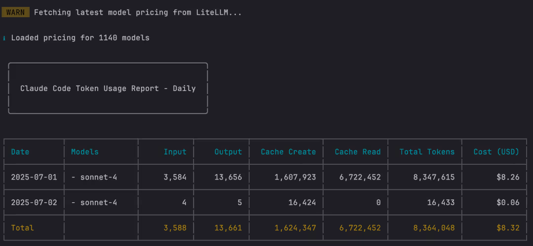 官方查看消耗,但过于笼统,不够直观,推荐使用 ccusage 工具来查看。