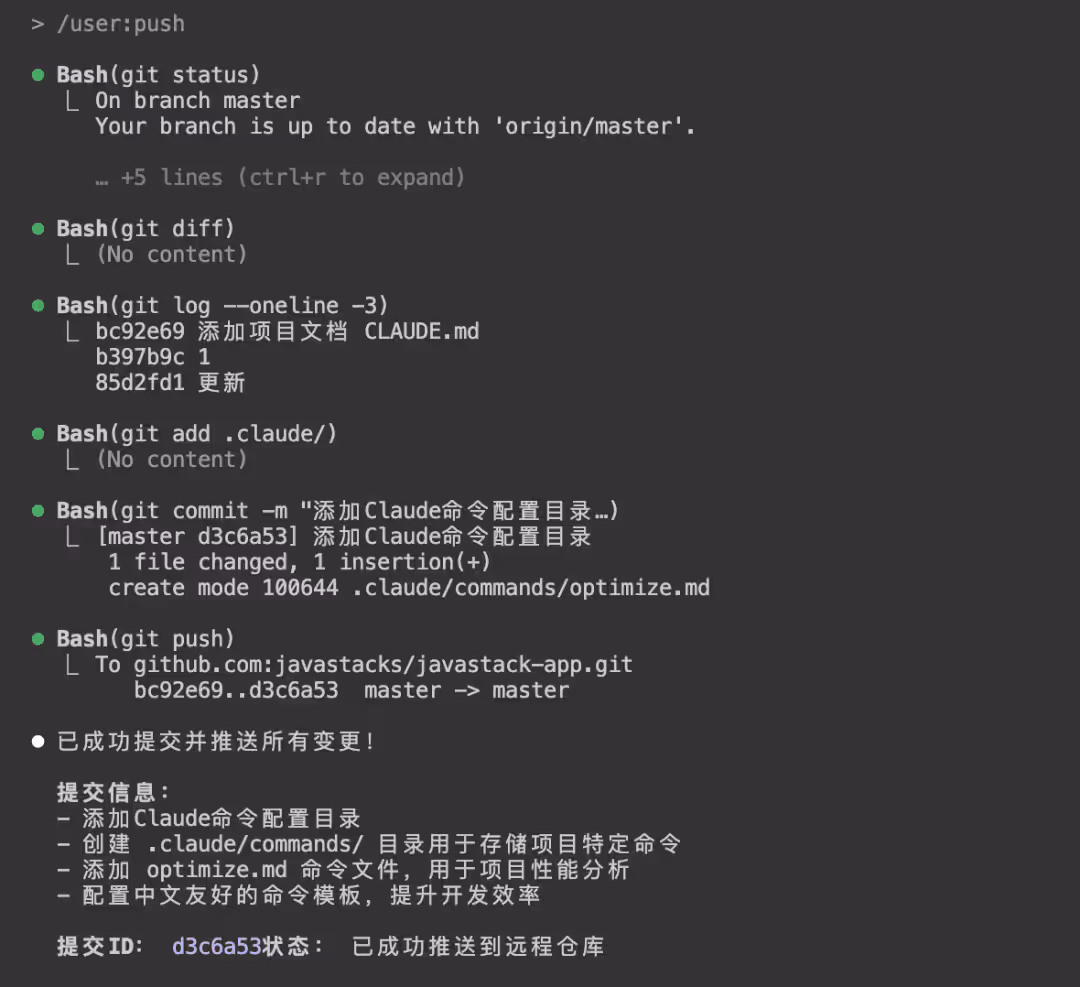 echo "用合理描述性信息提交所有变更文件,然后推送到远程仓库。" > ~/.claude/commands/push.md