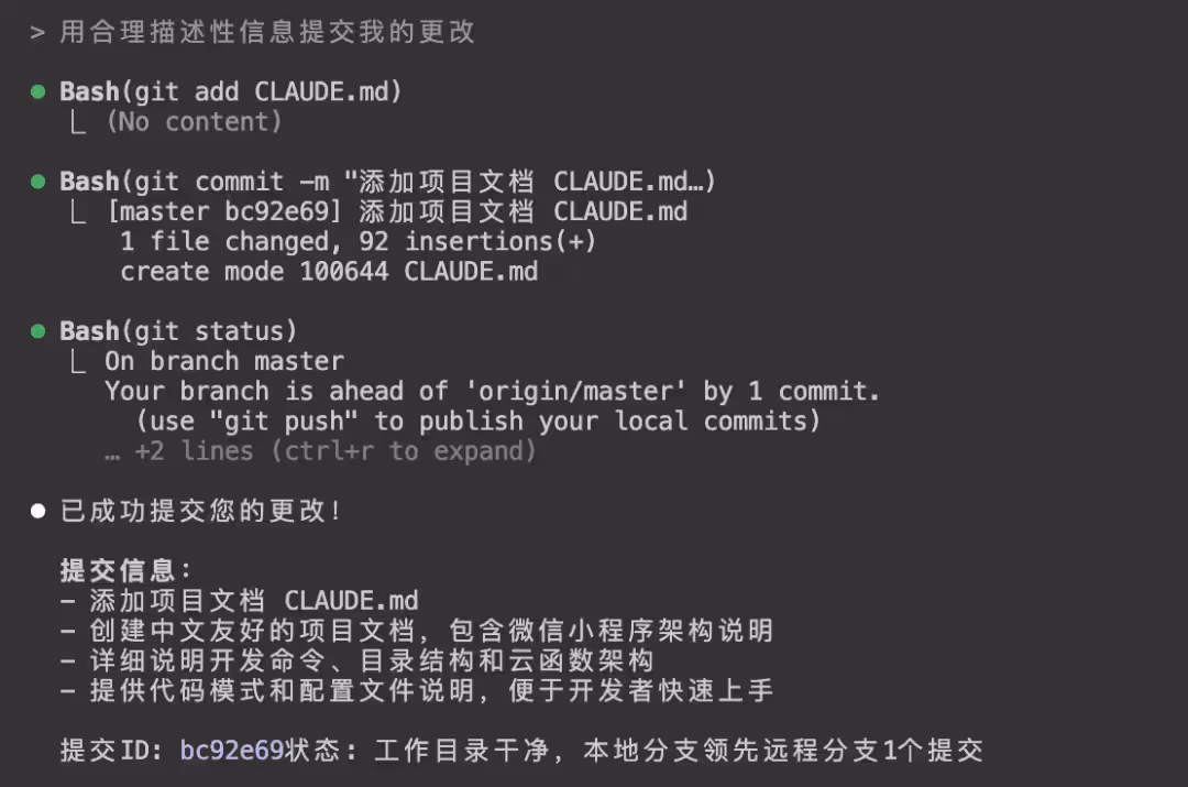 在 Claude Code 中,我们的 Git 操作就可以变得对话形式,不用记住一些繁琐的命令。